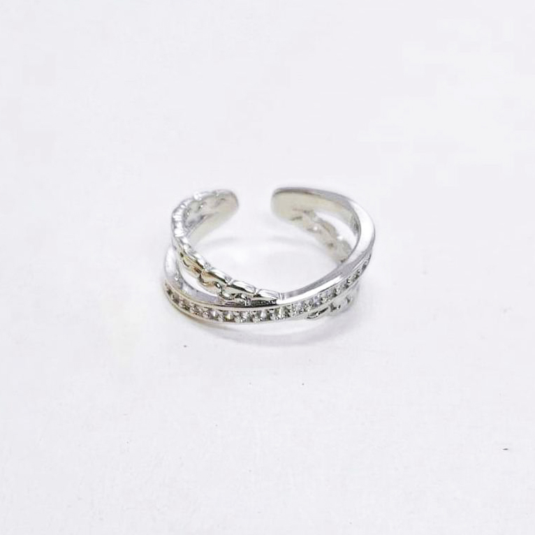 Кольцо безразмерное с фианитами размер 20*7мм цвет серебро в Самаре